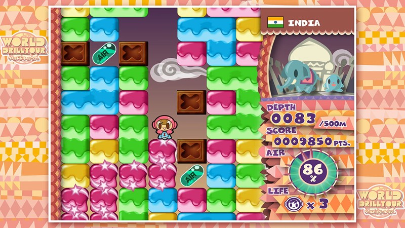 発売当時の難易度を再現した「クラシックコース」以外に、初心者向けの「カジュアルコース」も実装されているため、幅広い年代の人が爽快なパズルアクション要素を満喫できる。エアカプセルを取りながら落下するブロックを避け、地底のゴールを目指して進んでいく独自のパズルアクション要素を大いに楽しもう。