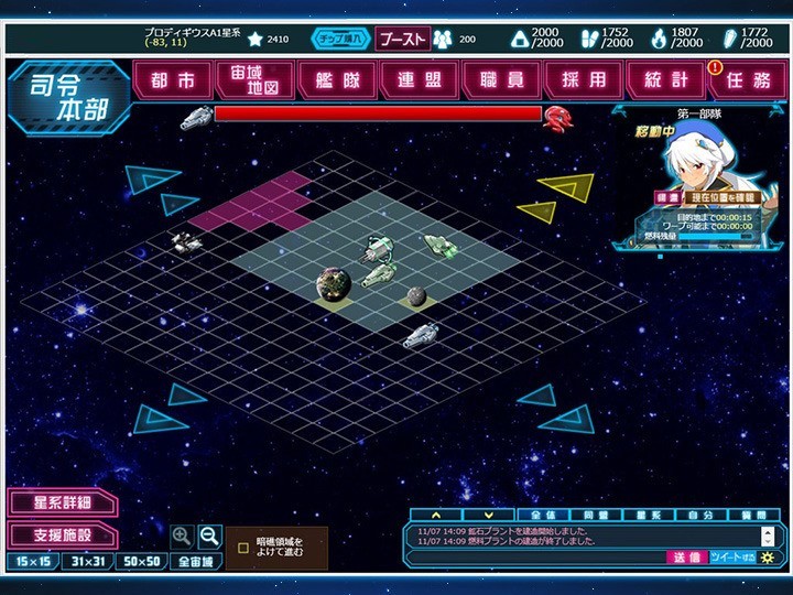 格子状に区切られたマス目状の宇宙には、惑星や小惑星などがたくさん散らばって存在している。ただし、正式サービス開始時点ではすべてのマスが未開拓地となっており、そこに何があるのかまったくわからなかった。