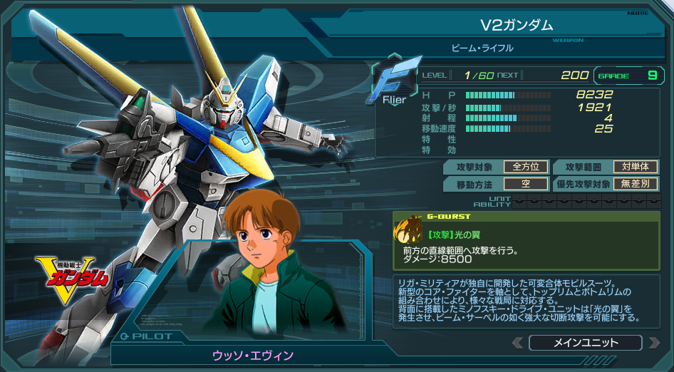 「エースユニット」はその名の通り、原作アニメでも主役級のパイロットが操縦するMSだ。基本性能が非常に高いだけではなく、「G-BURST」という必殺技も持っている。G-BURSTを発動させると、機体性能がアップしたり、広範囲に高火力の攻撃をしたりするぞ!