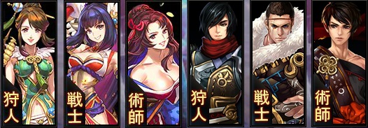ゲーム開始時に、使用するキャラクターを選択する。職業は「狩人」「戦士」「術師」の3種類があり、それぞれ男性と女性から選ぶことができる。