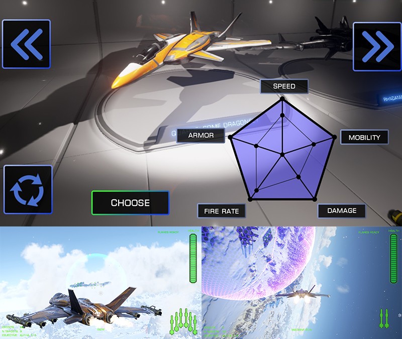 ▲「Quarrelsome Dragonfly」は、「F-14」に似たフォルムを持つ機体で、4種類の中で最もステータスのバランスが取れている。最初に選んでおきたい優秀な機体だ。