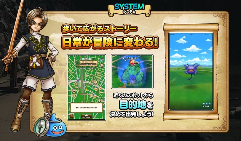 「スマホをもって、ぼうけんにでかけよう」がキャッチコピーになっている本作は、まさしく自分で動きまわって世界を旅していくゲームになっている。何気なく外に出掛けたり、通勤、通学などが大冒険に変化するという非常に魅力的なシステムだ。