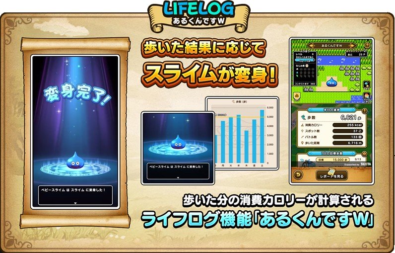 1986年5月27日に「ドラゴンクエスト」シリーズがスタートし、発売されれば当たり前のように売れている大ヒットゲーム。それが今回はヘルスメーターとの連動や位置情報など、スマホの機能をフル活用した本格RPGとなって登場した。目的地を決めて実際にそこまで歩いて行くなど、運動する目標となる点も素晴らしい。
