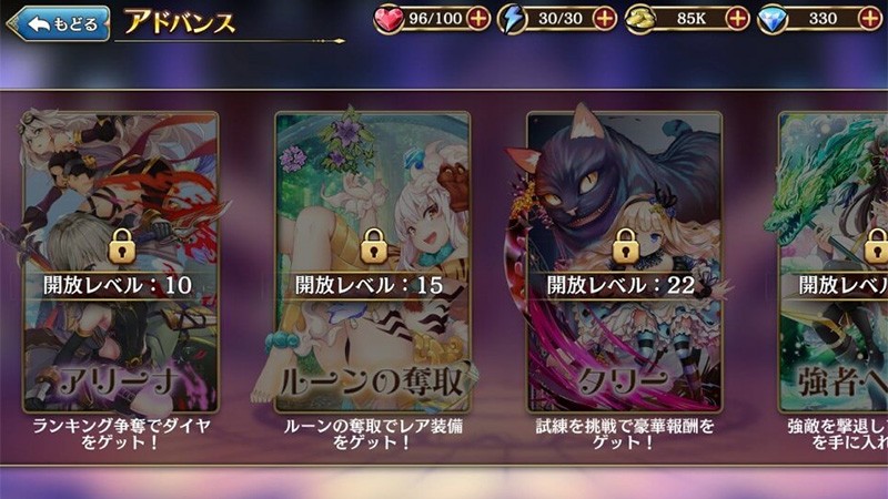 うまく連携スキルを発動できるパーティが組めれば序盤はかなり楽にストーリーを進めていけるだろう。プレイヤーのレベルに応じてコンテンツが解放されていくので、やるコトも増えていくし、メンバーたちも強くなっていくのだ。