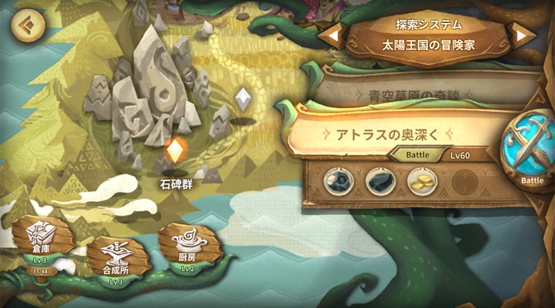 キャラはバトルに参加させることで経験値を獲得して強くなっていくが、素材を集めて、ランクアップ(共鳴)させることも可能だ。かなり強くなるので、条件を満たすことができたら、順次共鳴させていこう。全てのキャラが最高レアSSRまで進化させられるので、好きなキャラを優先的に育てるなどの楽しみもある。初期メンバーの「パン」「ティカ」などは訓練ステージを越えるだけでSRに進化可能だ。