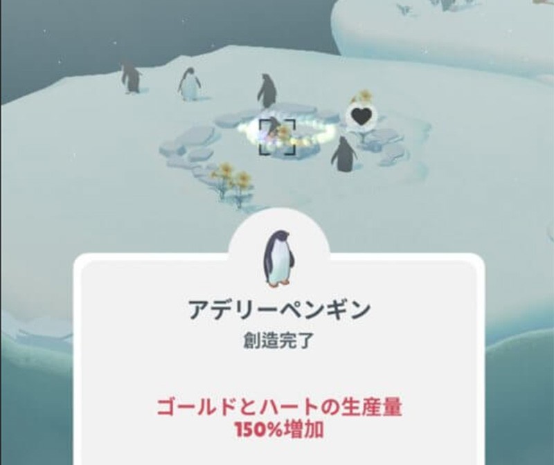 可愛らしい動物ばかりを置きたくなるが、ペンギン以外の動物を設置すると「ハートを2倍」獲得できる可能性やゴールドの生産量が上がったりと、動物によってそれぞれメリットが存在する。見た目を重視するか効果を重視するか非常に悩ましいところだろう。