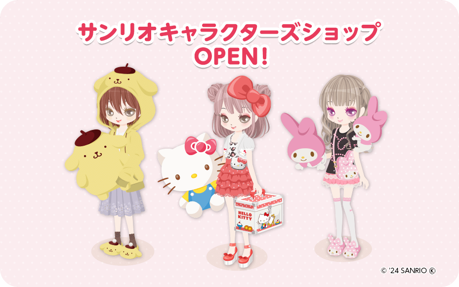 ニコッとタウンの魅力のひとつは、サンリオキャラクターとの公式コラボイベントだ。人気のハローキティやマイメロディ、シナモロールなど、世代を問わず愛されるサンリオキャラがアバター衣装やインテリア、ぬいぐるみとしてゲーム内に登場し、期間限定ガチャやショップで自分好みにコーディネートできる。