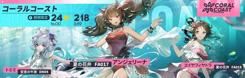 そのほか、前回開催時に登場した着せ替えシリーズ「コーラルコースト」も復刻し、新たに「トミミ」「アンジェリーナ」「エイヤフィヤトラ」3人の着せ替えが実装。