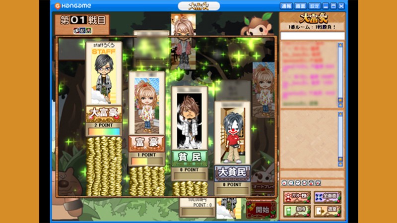 また、「ハンゲーム」内の「大富豪」公式サイトでは、毎日午前2時に更新されるランキングシステムがあり、成績優秀なプレイヤー100名の名前が表示される。上位5名はアバターまで表示されるので、かなり目立つこと請け合いだ!