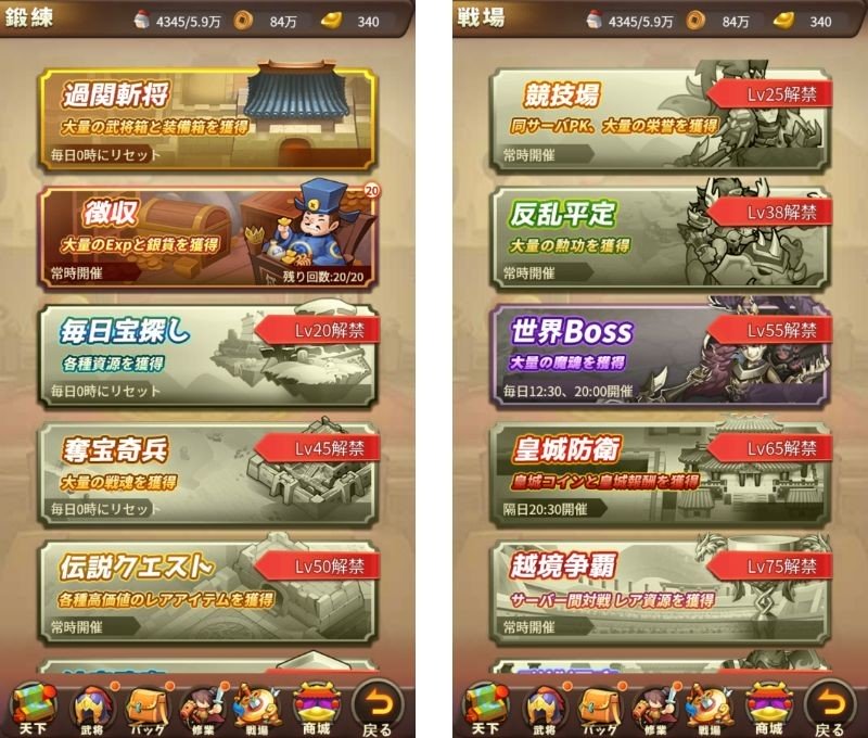 この他にも「探訪」や「懸賞」など、内政で部隊を強くする要素が用意されており、バトルや放置以外にも武将たちを内側から強化してみよう!