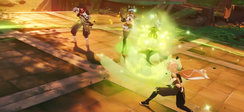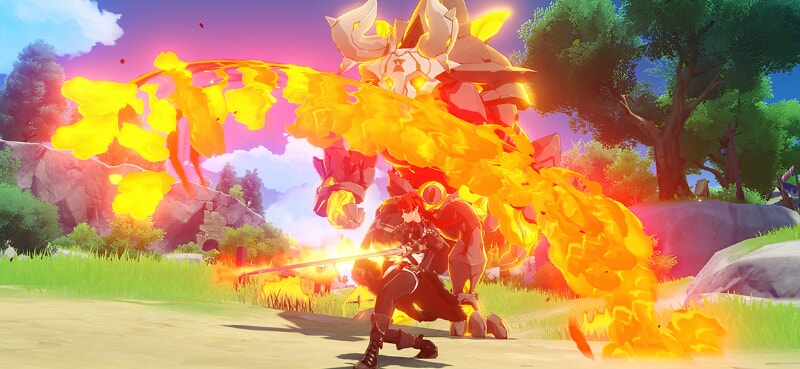 さらに元素反応はフィールド上のオブジェクトにも適用される。草むらに炎を放てば延焼が起き、水辺に氷をぶつければ氷の足場ができ、雨の日は全員が「濡れた」状態になるため感電のリスクが上がるなど、天候や地形を利用した戦術も組み立てられる。こうした環境を活かした戦術が取れるのも面白い点だ。
