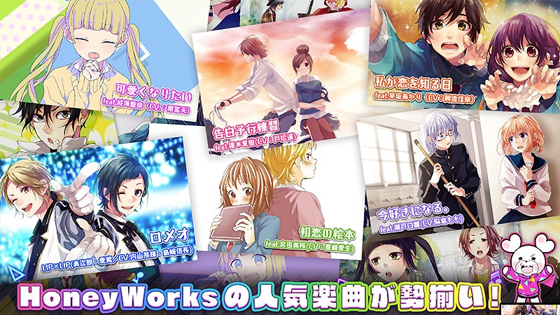 中高生に絶大な人気を誇るクリエイターユニット「HoneyWorks」の人気楽曲をミュージックビデオ付きで楽しめるリズムゲームパート、多彩なコンテンツが魅力で、2020年で活動10周年を迎えた人気のクリエイターユニット「HoneyWorks」ファンの人、「青春×リズムゲーム」の世界観が好きな人におすすめ。