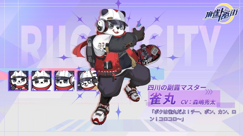 四川の副露マスター。中国四川出身のパンダで、四川麻雀をはじめ、各種中国麻雀ルールに詳しい。日本の雀士たちと交流するため麻雀一番街へ。