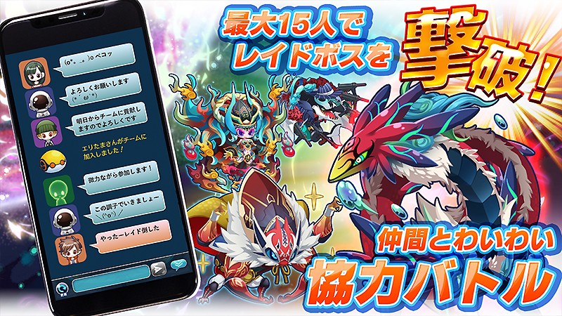 ゲームはソロプレイ以外に、最大15名のチームバトルもサポートしており、一緒になったプレイヤーと協力しながら他チームとのガチンコバトルへ挑むことも可能。「交配」を通じた交流と「チームバトル」を通じたコミュニケーションもできる面白アプリで、毎日プレイすることがどんどん楽しくなっていくはずだ。