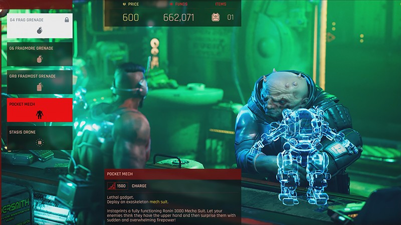 ▲サイバーパンク世界をフィーチャーした作品らしい武器類とアイテムも魅力。没入感は満点だ。