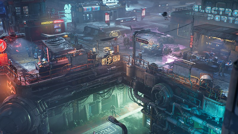 見下ろし型のプレイ画面でツインスティックシューター要素が展開する『The Ascent「アセント」』では、マップ内にある環境を上手く活用したアクションシューティング要素を楽しめるようになっている。武器の使い分け以外に、オブジェクトを活用する方法が入り込むことで戦略性が広がるぞ。