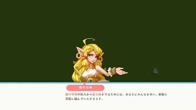 城主は暁の女神の導きのもと、建物ひとつない新天地で街を興し、闇の軍勢に立ち向かわなければならない。