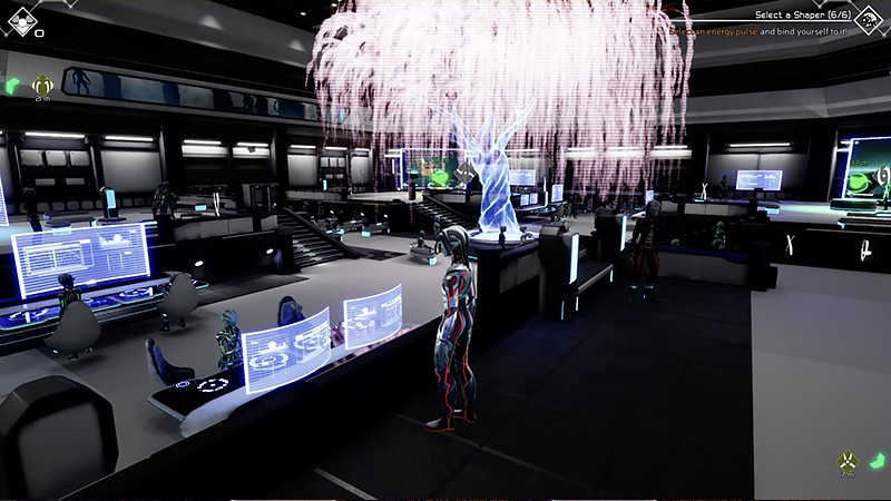 巨大な宇宙船内部でコマンダーに接触するとトレーニングが開始。プレイヤーと同様に何も知らない主人公は、このトレーニングを通じてゲーム内の各種システムを叩き込まれる。エアリー、エーテル、ファイア、ジョインターに分かれるパワーの切り替えを学んでいくことになるぞ。