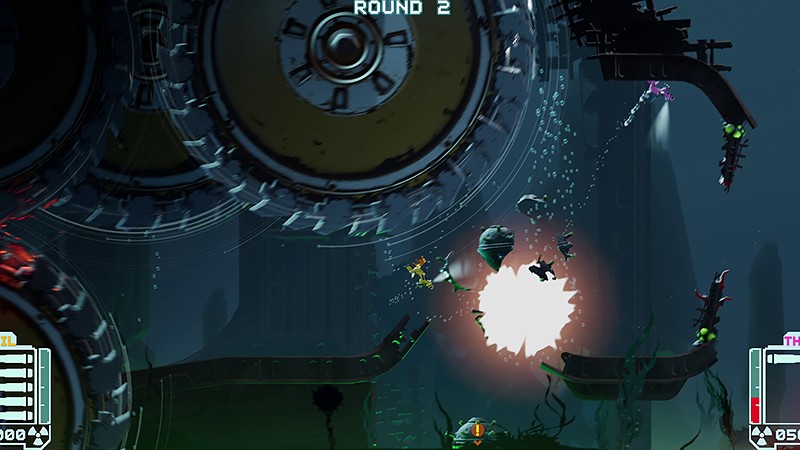 プレイヤーが操作する潜水艦は360度全ての方向に移動が可能で、シューティングスタイル的にはツインスティック型のシューターに近い。発射した魚雷は種類によって飛び方と爆発の度合いが変化するので、目まぐるしく動き回りながら魚雷攻撃を行っていくプレイ要素に夢中になれるはずだ。