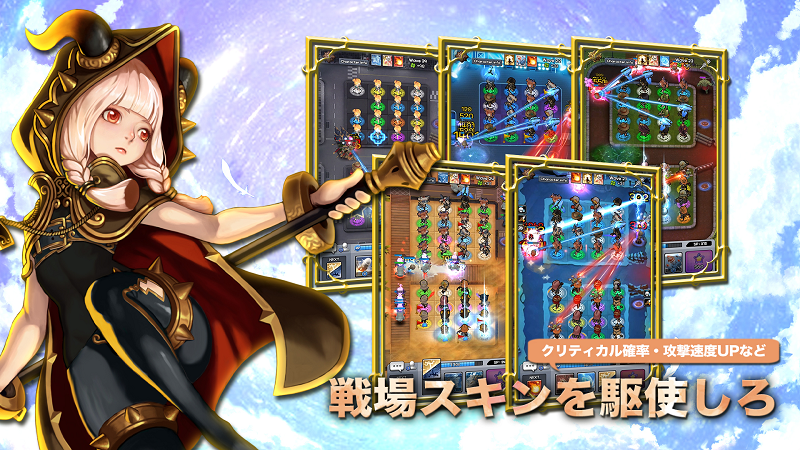 フィールドにユニットを配置してモンスターを封殺する昔ながらのタワーディフェンスバトルは、シンプルだからこそ反復したい魅力に満ちている。ユニット同士を合体させるレベルアップや自由に組めるキャラ・魔法デッキを駆使してキミだけの戦略で戦おう。
