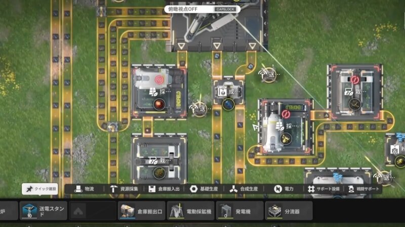 このシステムの魅力は、設備の配置場所や生産ラインの引き方次第で生産効率が大きく変わる戦略性にある。俯瞰視点に切り替えて基地全体を見渡しながら、無駄のない効率的なラインを追求する作業は、まるで本格的な工場シミュレーションゲームを遊んでいるかのようだ。素材の採掘から加工、完成品の運搬まで、すべてが自動化された巨大な工場が稼働する様子を眺めるのは、クラフト系ゲームやシミュレーションゲームが好きな人にとって、時間を忘れて没頭してしまう圧倒的な没入感をもたらす。