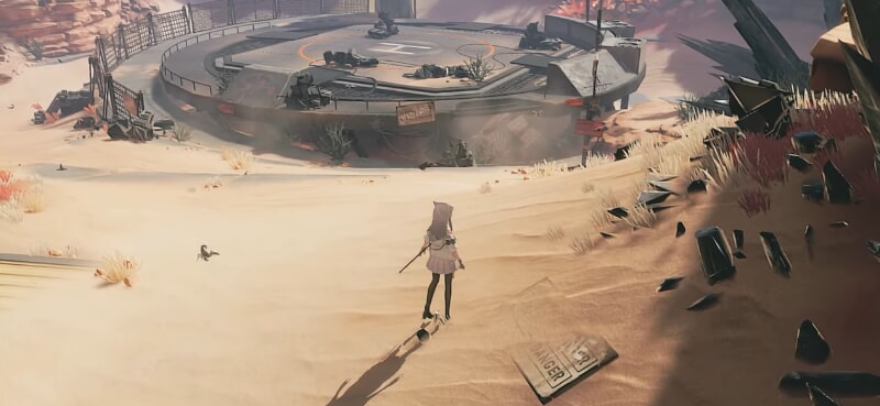 実際にCBTをプレイすると、その評価の高さが実感できる。アニメ調の3Dグラフィックは極めて美麗で、地形や建物の細部までリアルに描き込まれ、アークナイツの硬派なSF世界観を高解像度で再現している。カメラモードで撮影した景色は息をのむほどで、タロⅡの荒涼とした大地や未来的な施設群が圧倒的な臨場感を生み出している。