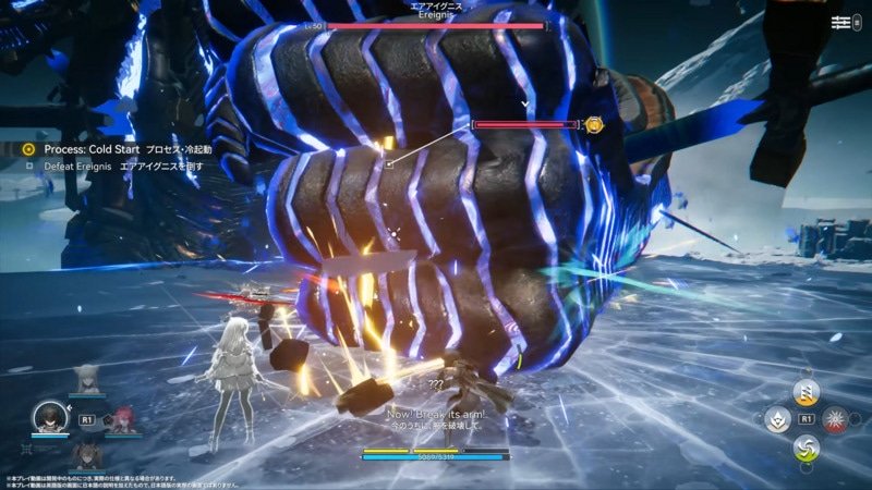 戦闘の奥深さを生み出しているのが、通常攻撃のコンボシステムと重攻撃の概念である。通常攻撃を連続で繰り出すことでコンボが発生し、最終段では敵にブレイク値を蓄積させる重攻撃が発動する。このブレイク値の蓄積が戦技ポイントの回復につながり、強力なスキルの発動タイミングを戦略的に判断する要素となっている。