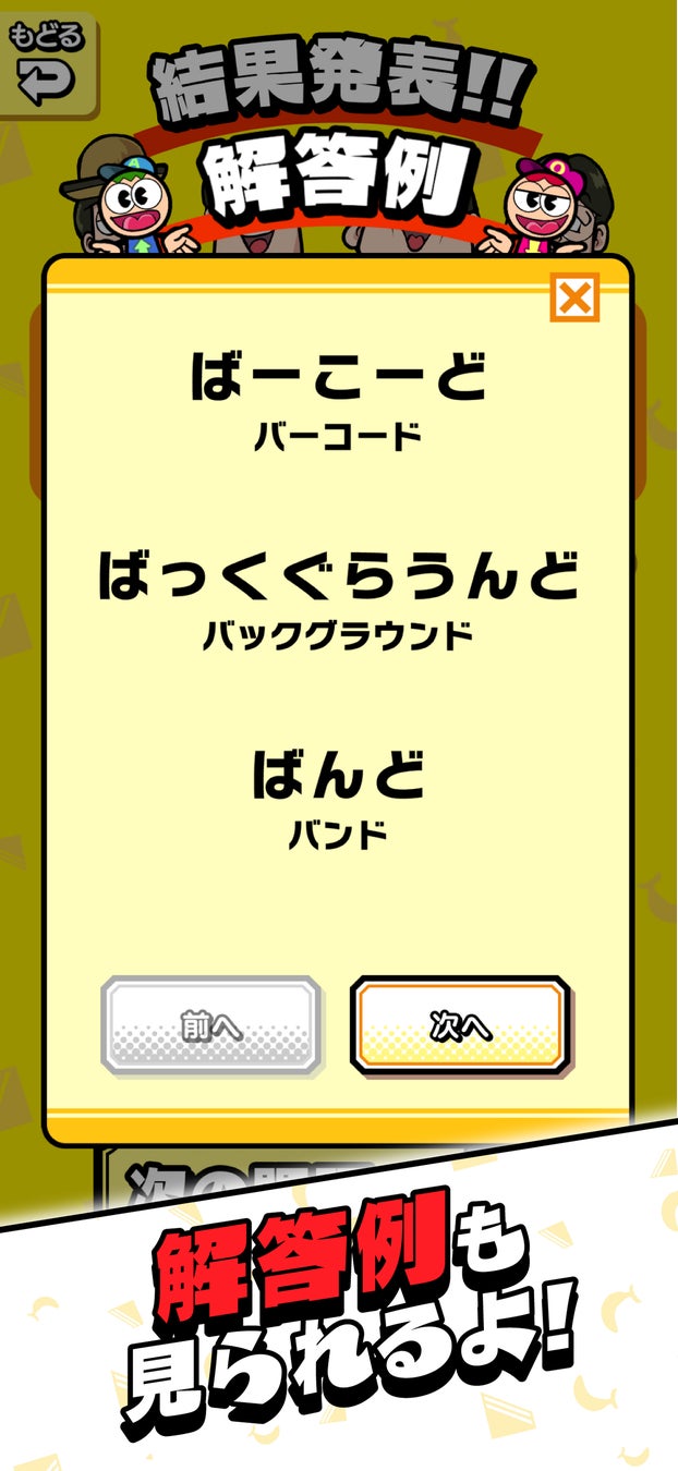 (※)本ゲームアプリでは、「あたまおしりゲーム」の採点(正誤判定含む)や解答例の表示に、「NTT 語彙データベース」を利用しています。