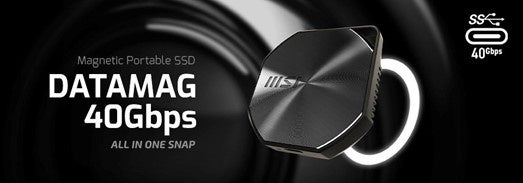 MSI DATAMAG 40Gbps ポータブルSSDは、DATAMAG 20Gbpsの革新的な設計を拡張し、最大40Gbpsの転送速度を備えた高速ストレージの新しいスタンダードを確立します。洗練された高耐久アルミニウムボディに収められており、iPhone、PC、家庭用ゲーム機などに最適な製品です。