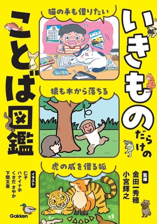 『いきものだらけのことば図鑑』(2025年3月3日発売)は、ことわざ辞典×いきもの図鑑のいいとこどりをした語彙学習の入門書です。いきもののことわざ・熟語・慣用句を、ひとめでことばのイメージが伝わるイラストと共に150以上紹介します。