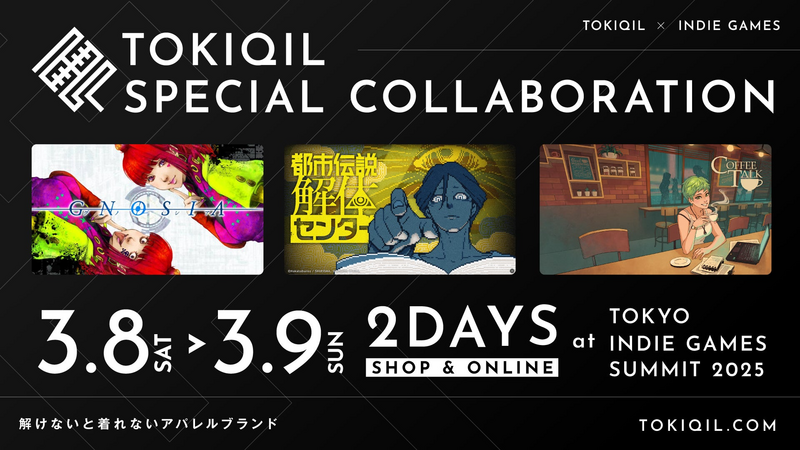 解けないと着れない、謎解き専門のアパレルブランド「トキキル」が、TOKYO INDIE GAMES SUMMIT2025 出店を記念し話題のインディーゲームとコラボが決定!
