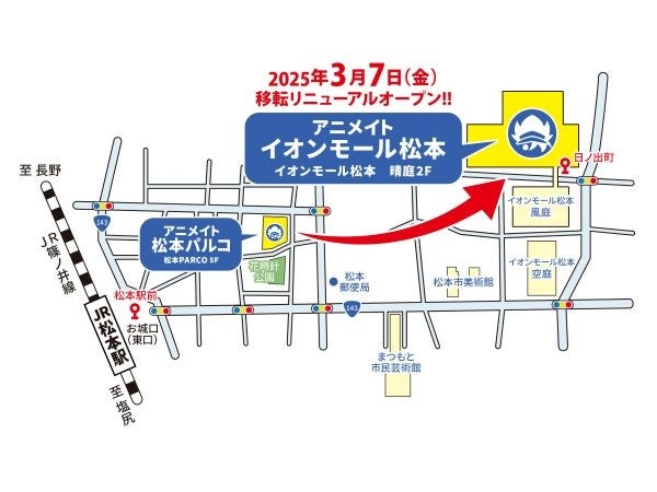 株式会社アニメイトは、2025年3月7日「アニメイトイオンモール松本」を「イオンモール松本」晴庭の2Fに移転リニューアルオープンいたしました。