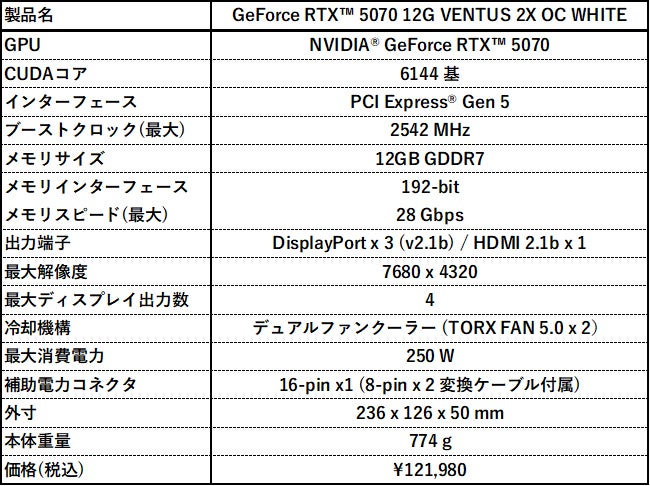 https://jp.msi.com/Graphics-Card/GeForce-RTX-5070-12G-VENTUS-2X-OC-WHITE