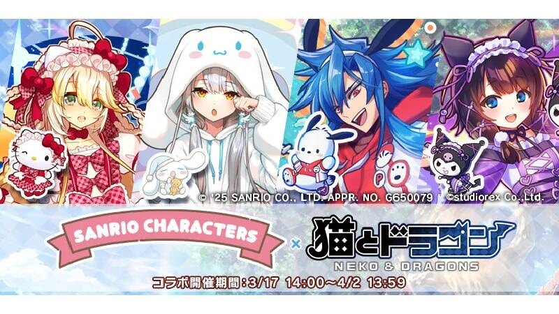 株式会社ドリコム(本社:東京都品川区、代表取締役社長:内藤裕紀、以下「ドリコム」)のグループ会社の株式会社スタジオレックス(本社:東京都品川区、代表取締役社長:相見伸之介、以下「スタジオレックス」)は、新感覚スマホRPG『猫とドラゴン』において、2025年3月17日(月)より、『サンリオキャラクターズ』とのコラボキャンペーンを実施することをお知らせいたします。