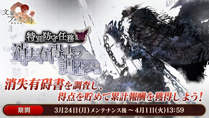 また、イベント『特別防守任務「消失有碍書ヲ調査セヨ」』を開始いたしました。
