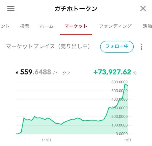 イケハヤ氏が手掛ける『ガチホトークン』は、FiNANCiE上で2024年10月にスタート後、わずか3か月で初期価格の656倍に急上昇(2025/1/21時点)。現在、FiNANCiEで最も価値の高いトークンの1つとして注目されています。
