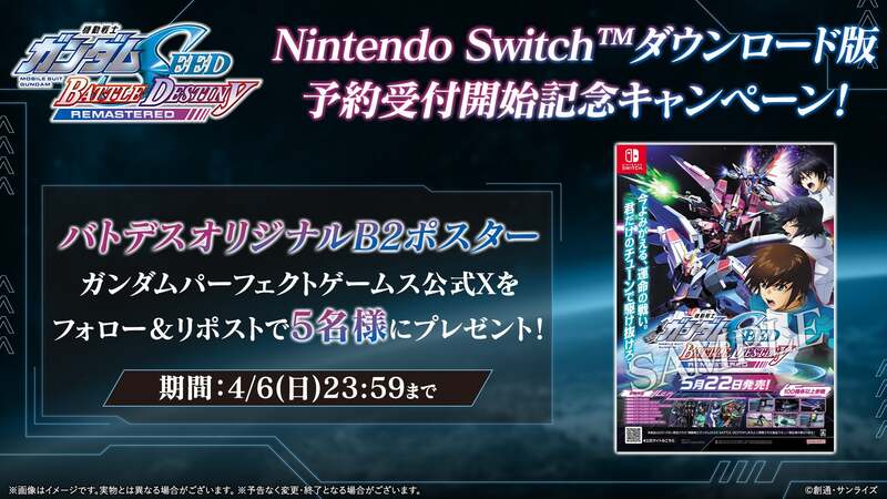 Nintendo Switch™/STEAM®『機動戦士ガンダムSEED BATTLE DESTINY REMASTERED』につきまして、Nintendo Switchダウンロード版の予約受付を開始したことをお知らせいたします。