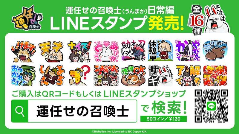 「運任せの召喚士」初のオリジナルLINEスタンプ「運任せの召喚士(うんまか) 日常編」が登場しました。