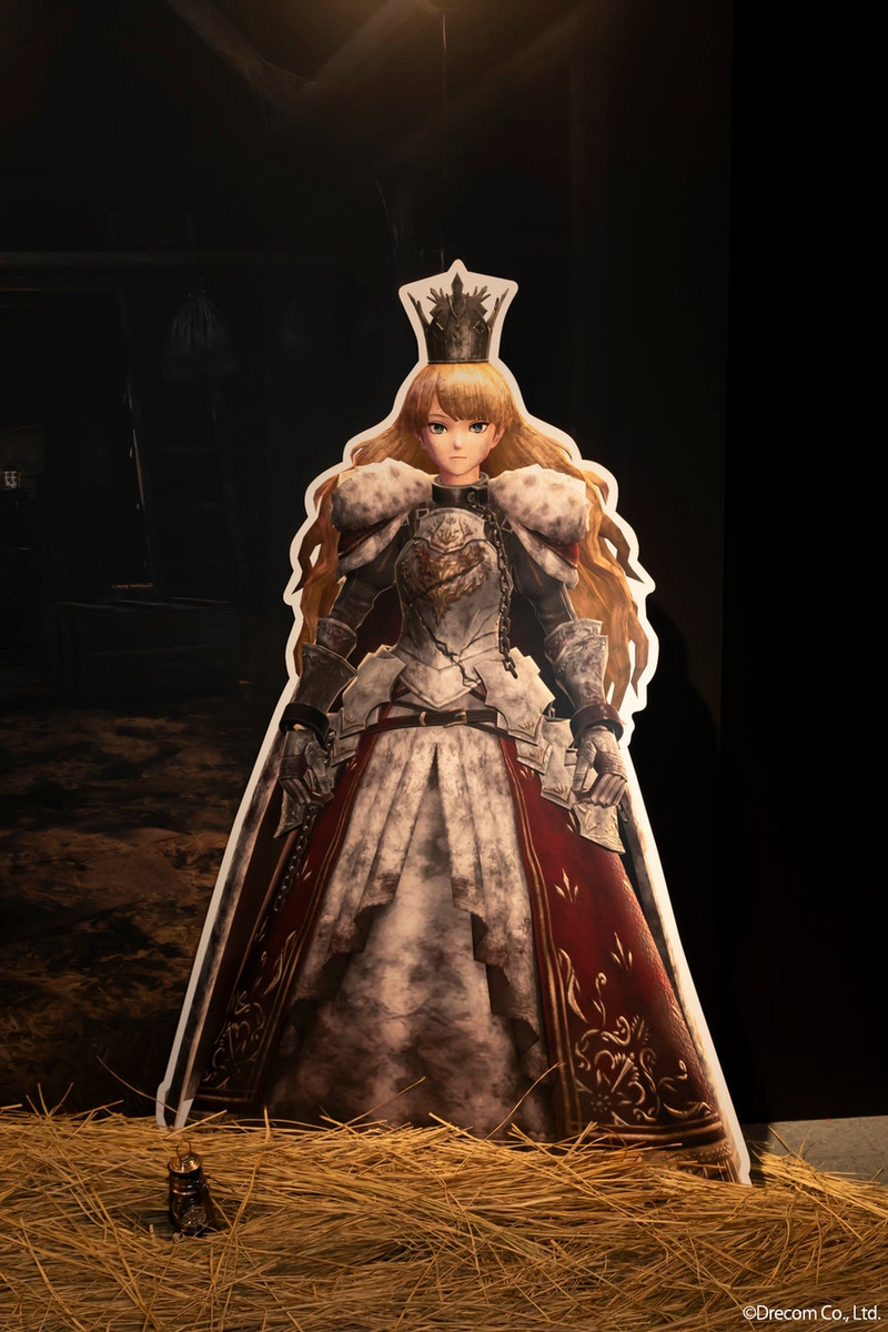 「馬小屋」のフォトスポットでは、ゲーム内の馬小屋の背景と共に、床には実物の藁が敷かれており「馬小屋」で寝泊まりする冒険者の気分が味わえるフォトスポットとなっていました。伝説の冒険者ラナヴィーユも汚れが残ったまま。