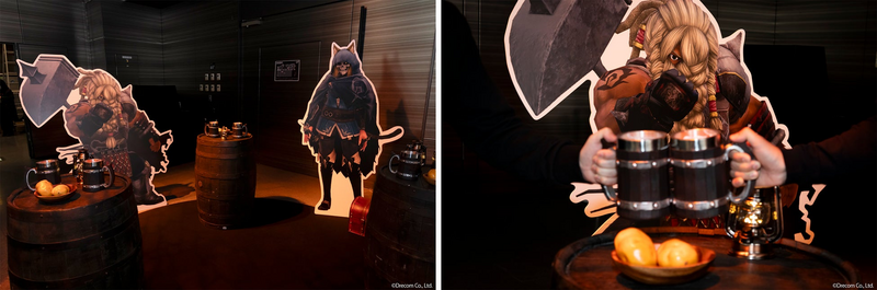 ゲーム内の人気のシーンである、仲間と乾杯する様子を再現した撮影ができるフォトスポットでした。