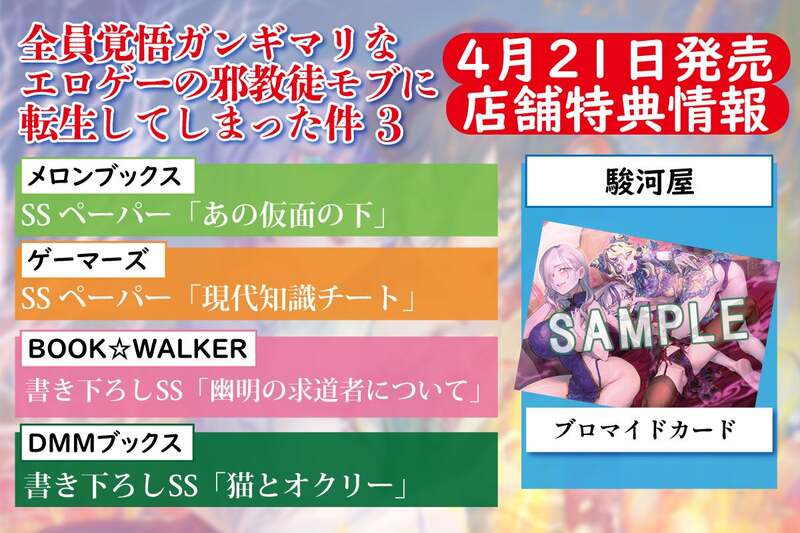 『全員覚悟ガンギマリなエロゲーの邪教徒モブに転生してしまった件3』4月21日発売!