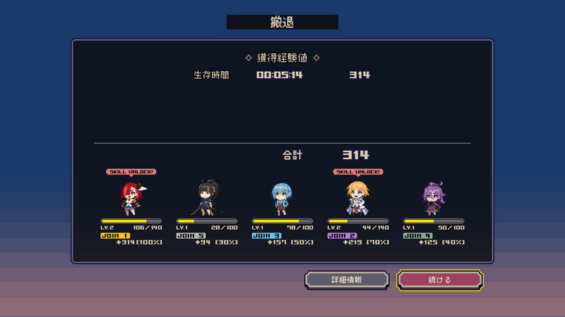 プレイを重ねることで腕前が上がり、キャラクターたちの新しいスキルも次々と解放されていきます。デモ版では厳選したスキルによってゲームの本質を理解しやすくなっていますが、ゲームクリアまでの道のりは決して容易ではありません。個性豊かなキャラクターたちと力を合わせて、ゲームクリアを目指しましょう。