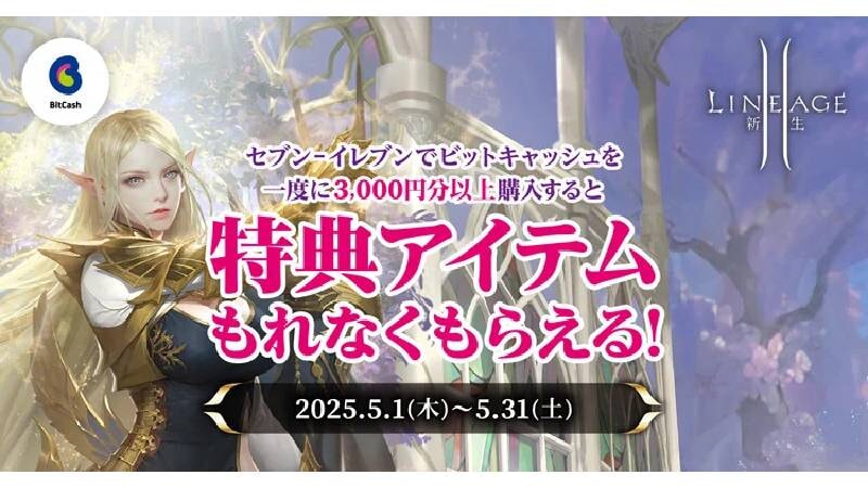 2025年5月1日から31日まで、全国のセブン-イレブンで『リネージュ2』ファン必見のキャンペーンが開催されます。ビットキャッシュを3,000円以上購入するだけで、ゲーム内アイテムがもれなくもらえるチャンス!さらに、累計5,000円以上のカイモチャージで特典アイテムも獲得可能。この機会にゲームライフをより豊かにしませんか?今すぐセブン-イレブンに行って、お得なアイテムをゲットしましょう!