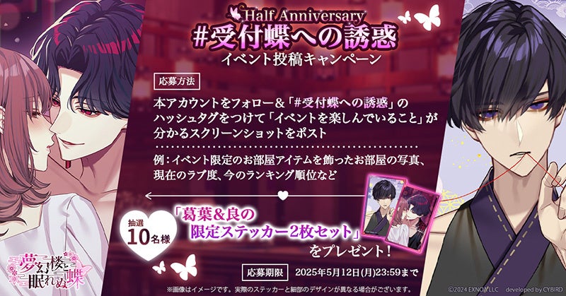 「夢幻楼と眠れぬ蝶」Half Anniversaryイベント開催!新ガチャ&限定ステッカープレゼントも